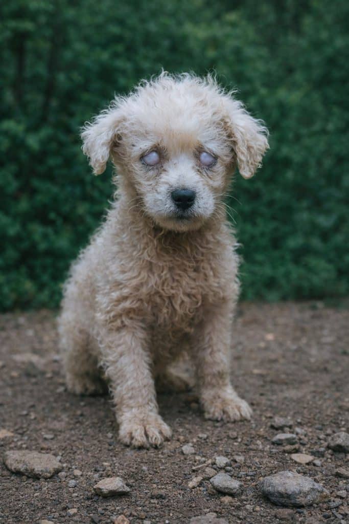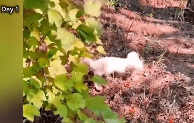 The small white dog wandered in circles, his body thin and unsteady, moving without direction.