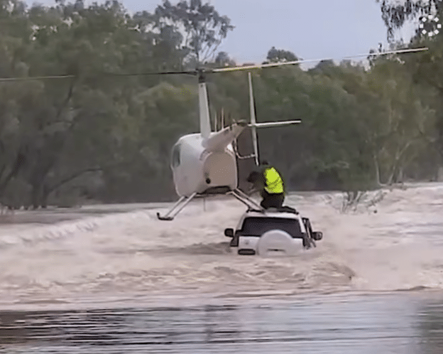 Against strong winds and unstable conditions, it hovered once more above the stranded vehicle.