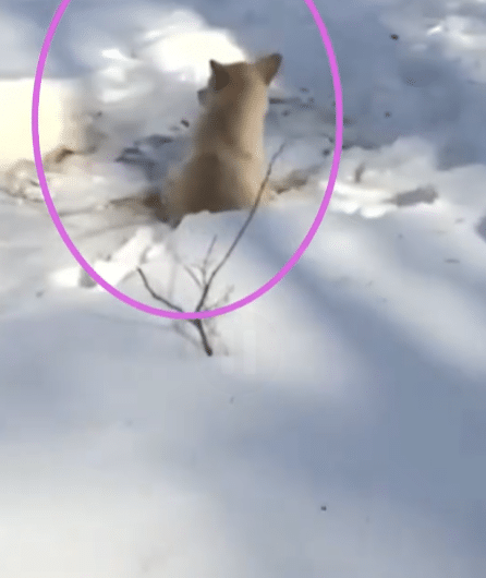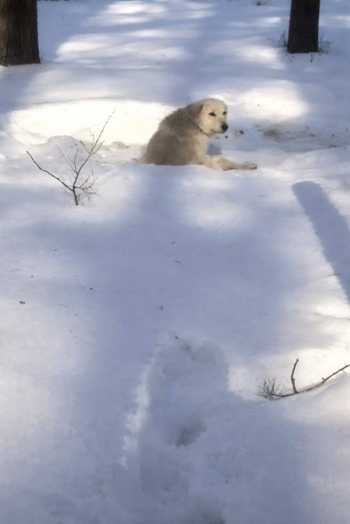 In the middle of a quiet, snow-covered landscape, Luna was found lying still.