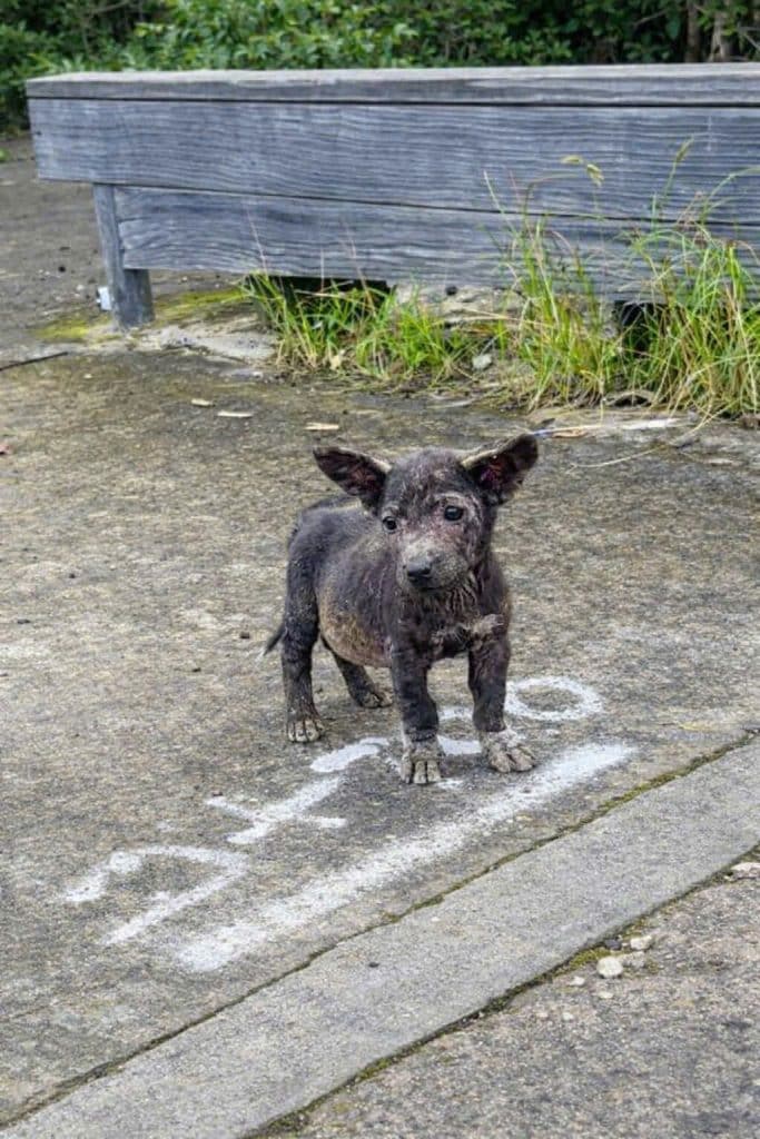 Inside a nearby shop, tucked away in a dark corner, the first puppy was found.