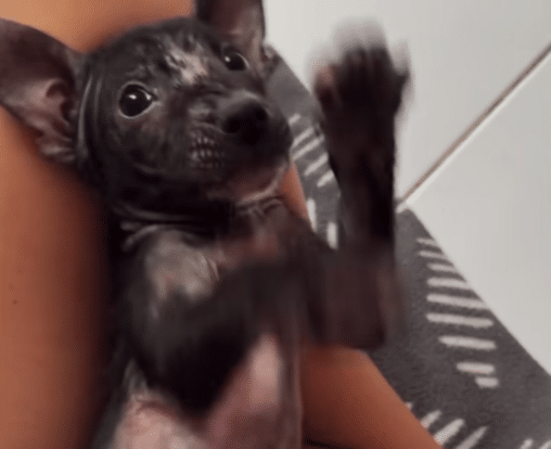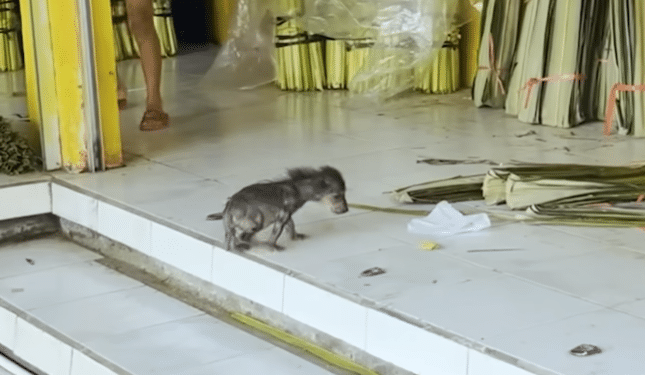 He had hidden himself beneath a dirty cover, pressed against the floor as if trying to disappear. His body was small, fragile, and his fur had fallen away, leaving his skin exposed and sensitive.