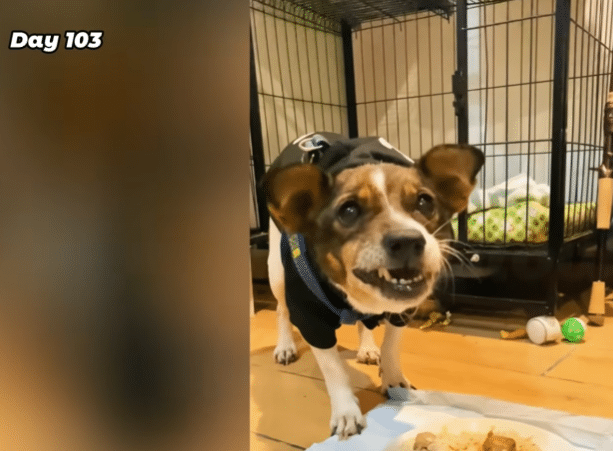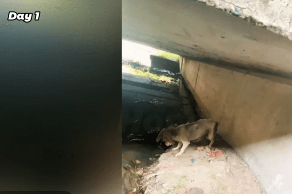 By day 110, there was no trace of the fearful dog hiding beneath the bridge.