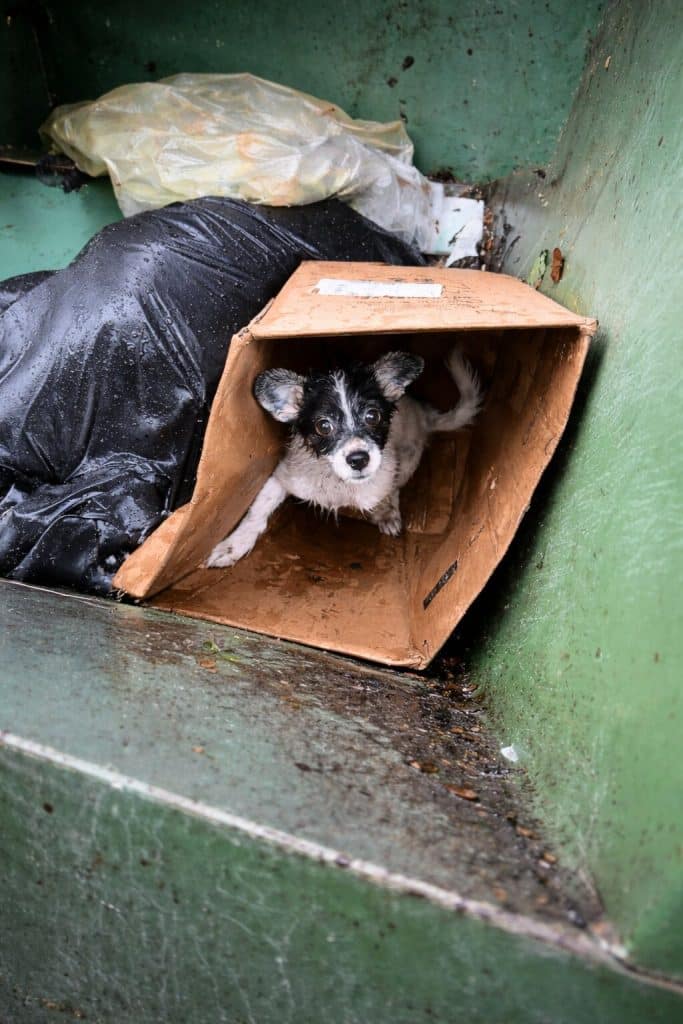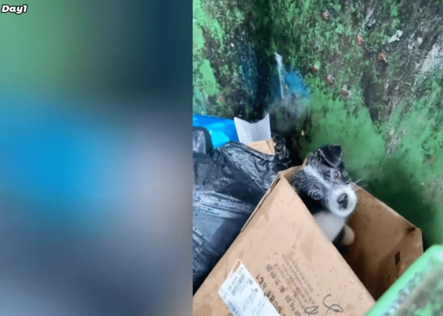 On a rainy day, as he was finishing another delivery, a young courier heard a faint cry coming from a trash bin.