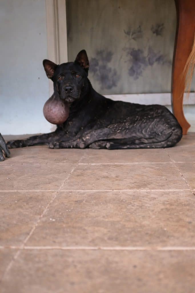 There was a large growth along his face and neck.