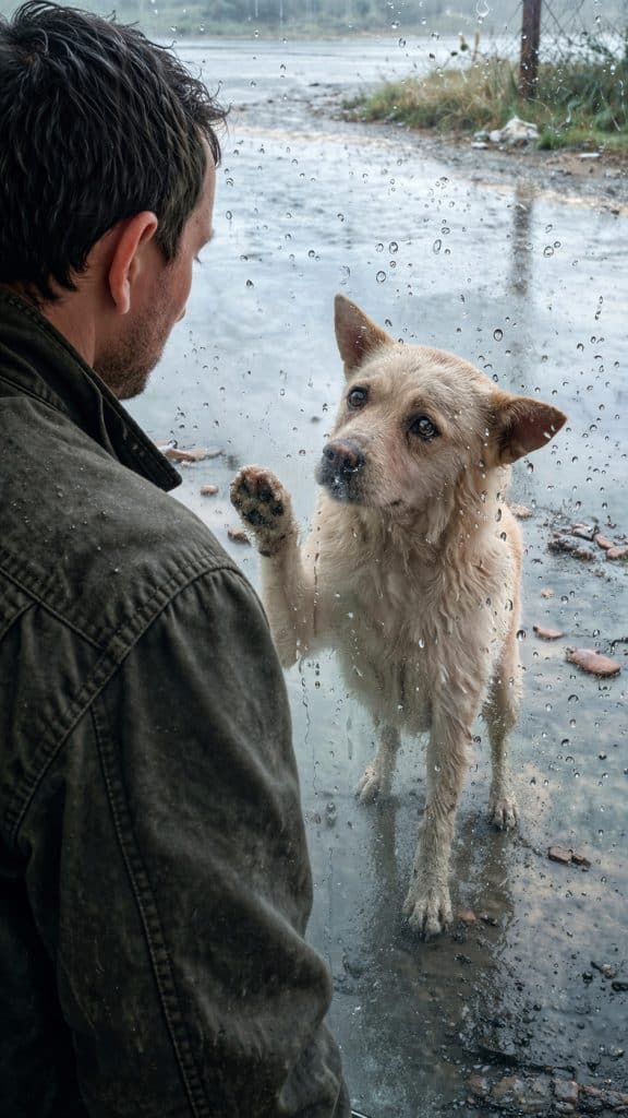 A mother dog appeared at the entrance of a small shop—restless, alert, and unlike any stray that usually passed by.