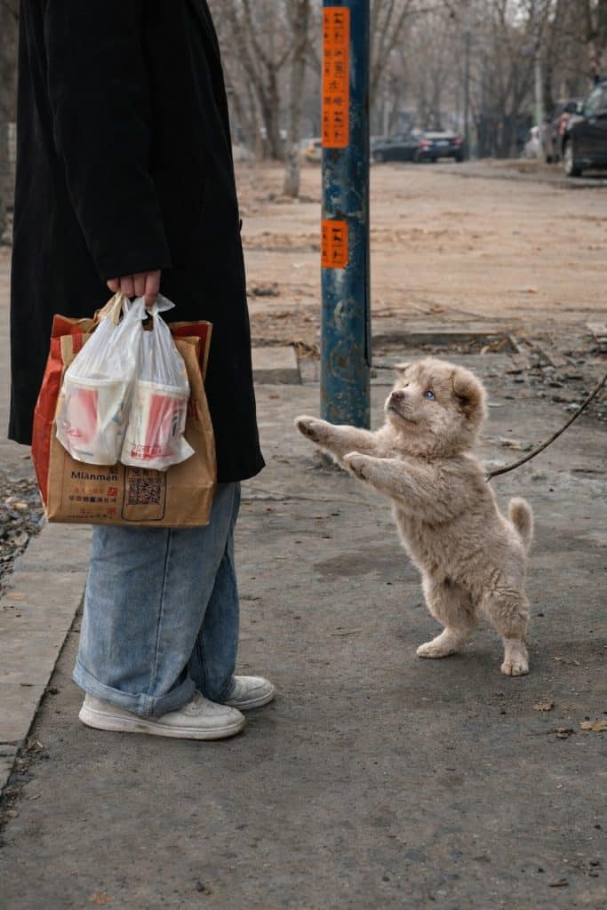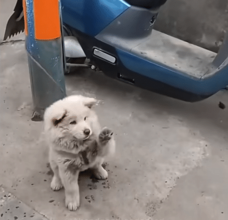 The puppy approached carefully, drawn by hunger, but it quickly became clear that it wasn’t just food he wanted.