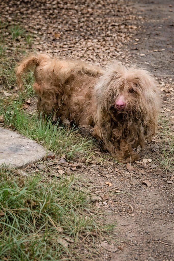 The matted fur wasn’t just tangled—it had hardened, trapping everything within it. Each movement became a struggle. Each step required effort that his aging body could barely give.