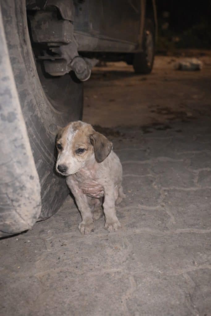 That night, the puppy remained fragile.