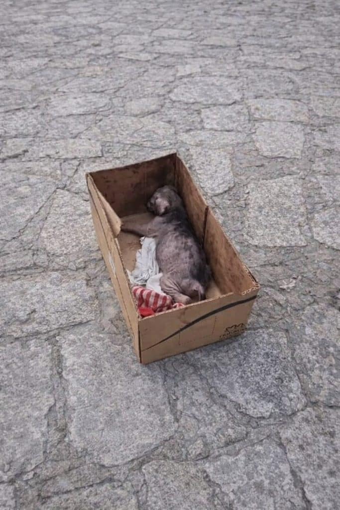 Inside was a puppy—fragile, weak, and struggling with a severe skin infection. Its body was sore, its fur patchy, and its eyes held a quiet confusion, as if it didn’t understand why it had been left alone.
