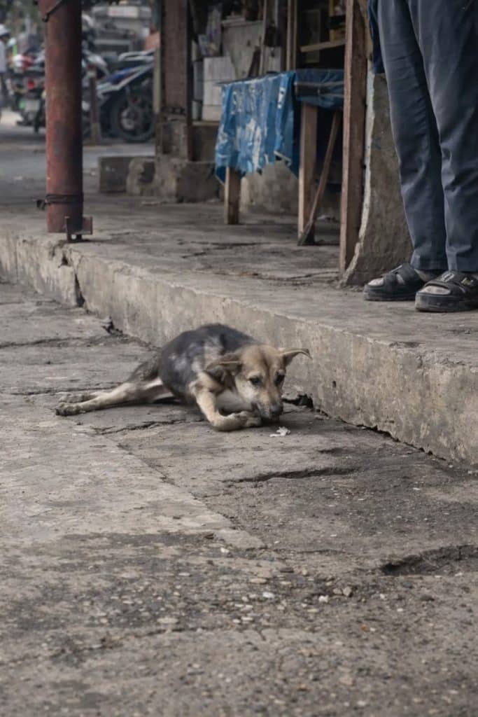 His small frame suggested a dog who had gone too long without proper care, proper rest, and the medical help he urgently needed. There was no softness around him, no sign that life had been easy. Only the daily reality of getting through one more moment the best he could.