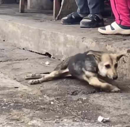 Across rough concrete and dry patches of dirt, the little black-and-tan dog pulled himself forward using only his front legs. His back legs trailed behind him, completely still, while his thin body strained with every small effort. Even the shortest distance looked exhausting. And yet John kept going, as if stopping simply was not an option.