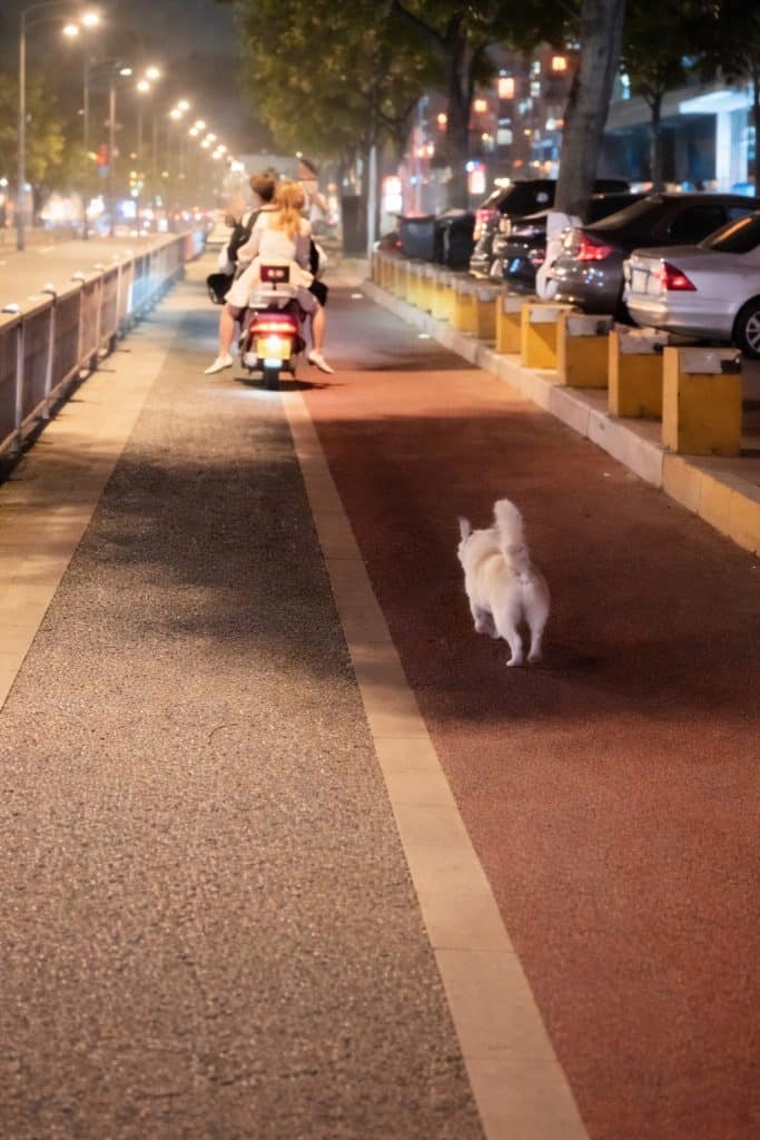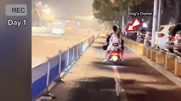 A small dog ran after a scooter disappearing into the distance, her steps quick at first… then slower, more uncertain.