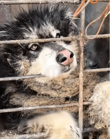Inside a small, filthy cage sat a Husky—once proud, now barely recognizable.