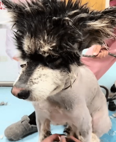 At a grooming space, professionals began the careful process of removing the heavy, matted fur that had built up over time.