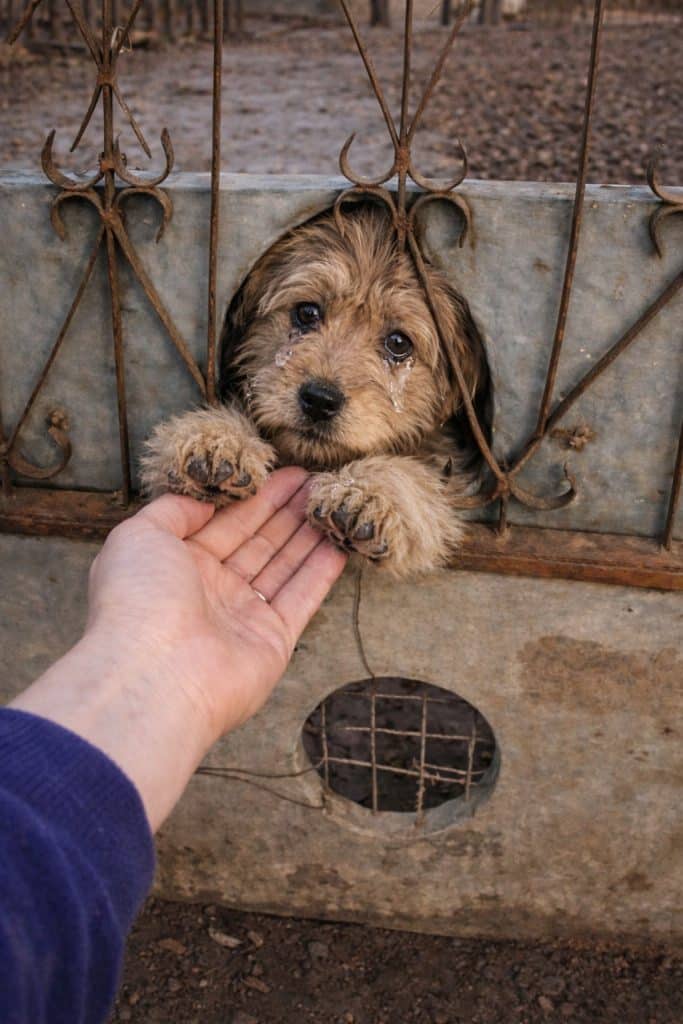 Through a small opening in the gate, they fed him gently, piece by piece. They poured water into a bowl, watching as he rushed forward to eat and drink.