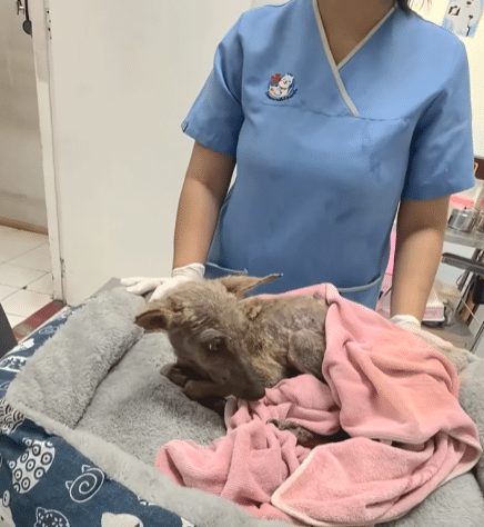 Luki was gently lifted and brought straight to a veterinary clinic, where his condition was immediately assessed.