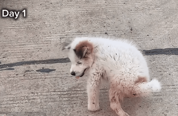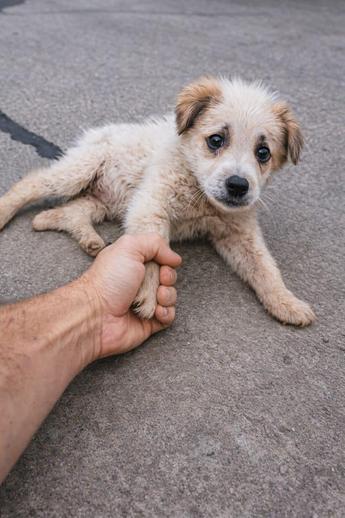 It began on a stretch of hot pavement, where a small puppy struggled to move forward.