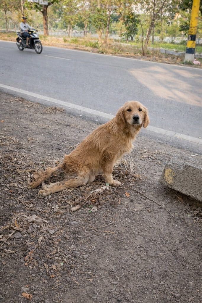 Most of his fur was gone.