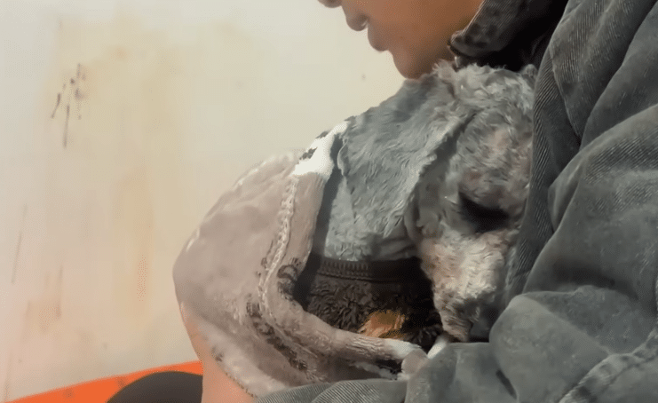 The puppy who once struggled to move across dirty ground now lives in a place filled with care, attention, and warmth.