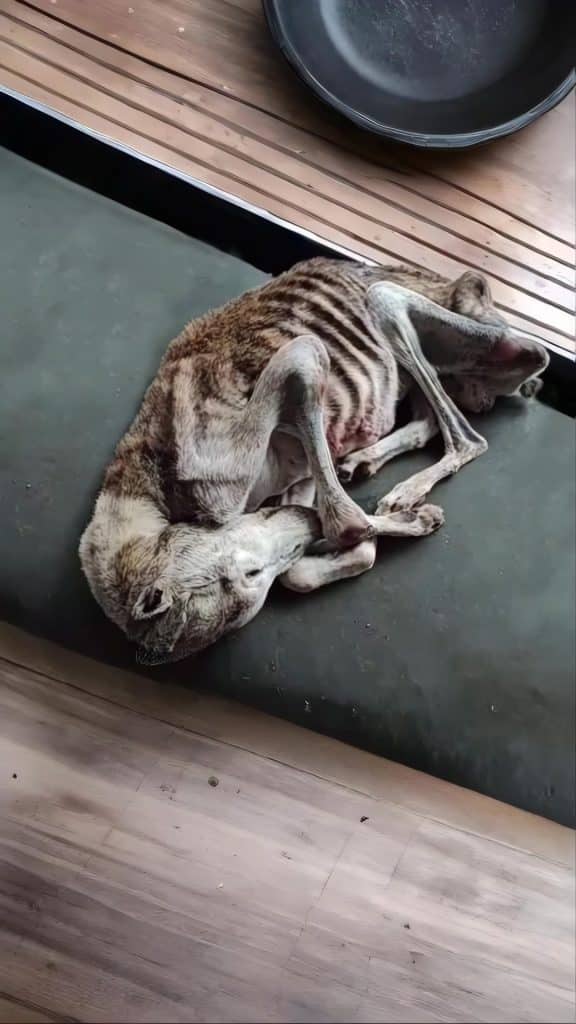 A small dog lay stretched across a patch of sunlit ground, so still he almost disappeared into it. Only the soft rise of his chest revealed he was still holding on.