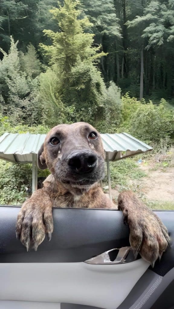 A thin, exhausted dog was running—using every bit of strength she had left to follow the car.