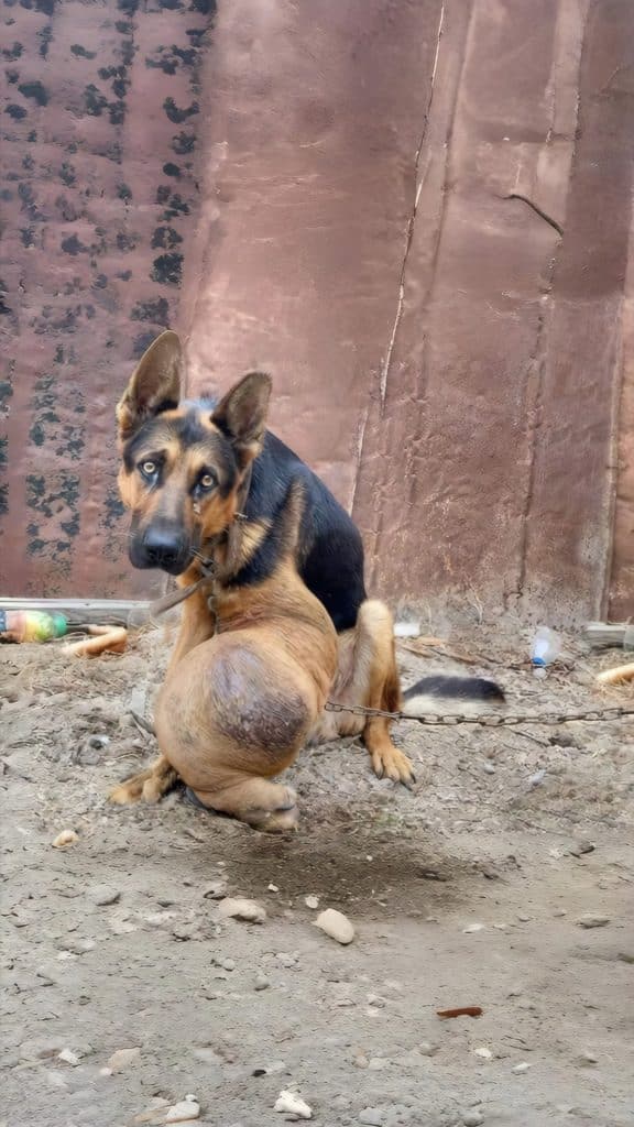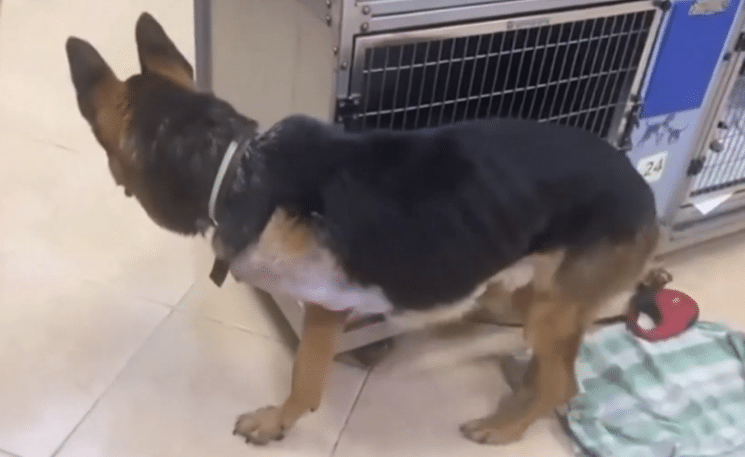A dog in desperate condition.