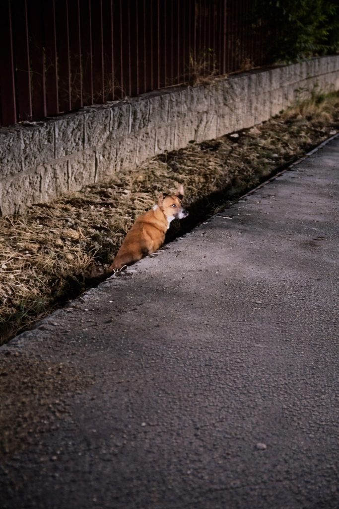 The dog who once lay still now moved with purpose.