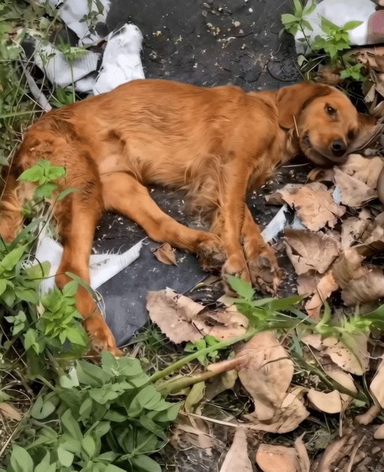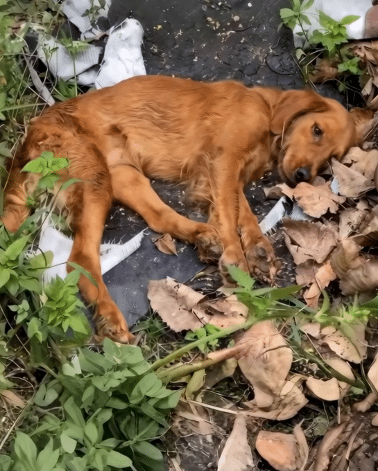Nothing unusual—until someone noticed a dog moving slowly along the road.