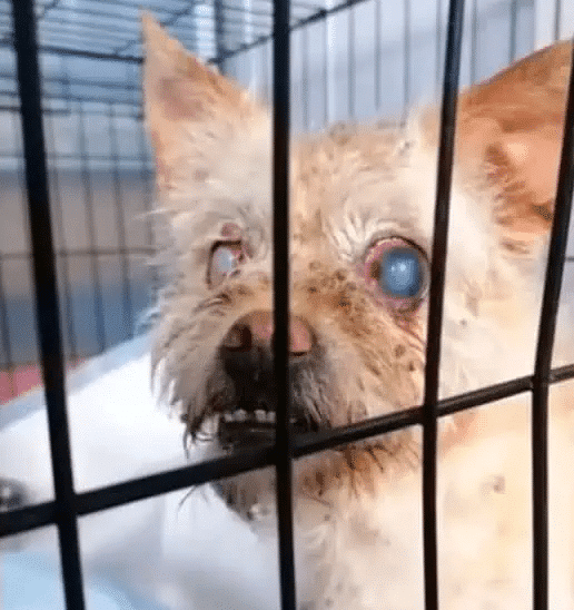 Both dogs were rushed to the care center where they received immediate attention. Agnes’ condition was severe, and a veterinary exam confirmed the extent of her suffering. She had glaucoma, a painful eye condition that had likely been left untreated for far too long. Despite the trauma, Agnes showed no aggression. Instead, she leaned into the hands that reached for her. Her trust was immediate, as if she knew, deep down, that she was finally safe.