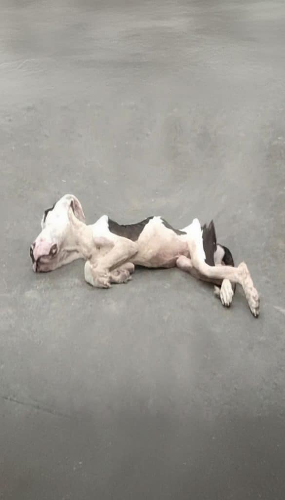 She simply lay there—quietly—by the edge of a busy road, her body pressed low to the ground as if trying not to take up space in a world that had already forgotten her.