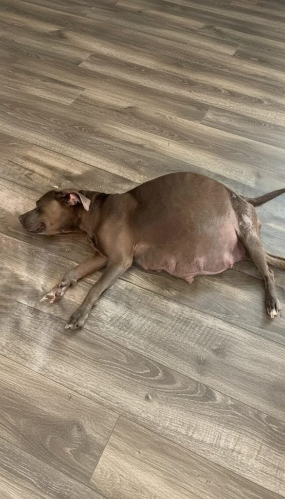 Some stories begin in quiet suffering, unseen and unheard, before unfolding into something that restores faith in compassion. This is one of those stories. When rescuers first encountered Rosemary, she was tied to a rope outdoors, left without shelter, comfort, or a clear chance of survival. Her body was heavy with pregnancy, her energy nearly gone, and yet she stood there patiently, as if waiting for someone to notice. She was a gentle Pit Bull mix whose eyes told a story of exhaustion mixed with an unbroken spark of trust. Despite everything she had endured, she did not turn away from the people who approached her. Instead, she leaned into the moment, as though hoping this time would be different.
