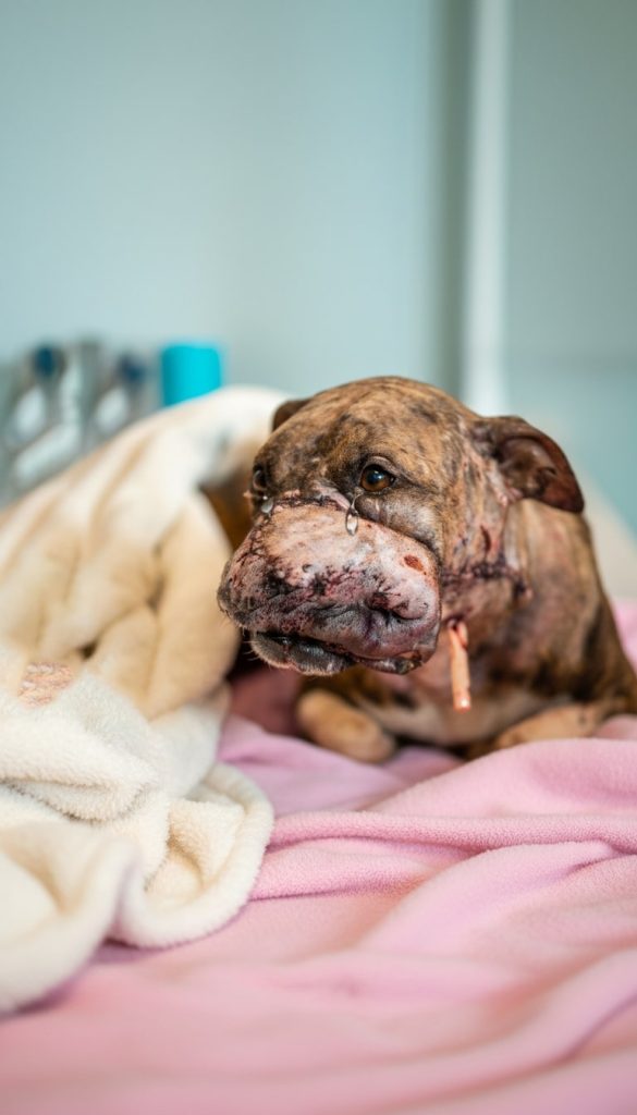 Amber was rushed to emergency veterinary care, where a dedicated medical team immediately stepped in. Saving her life required more than basic treatment. It meant planning and performing multiple complex surgeries, each one focused on restoring her ability to eat, breathe, and live without pain. Over several intense days, veterinarians worked with patience and precision, determined to give her a real chance.