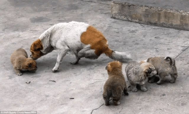 Locals watched in amazement as Shi Bao tended to her puppies. She nursed them attentively, kept them close, and guided them with remarkable confidence. When it was time to move, she balanced skillfully on her front legs, keeping her little family together as they explored short distances. There was no panic or confusion in her movements—only focus and quiet devotion.