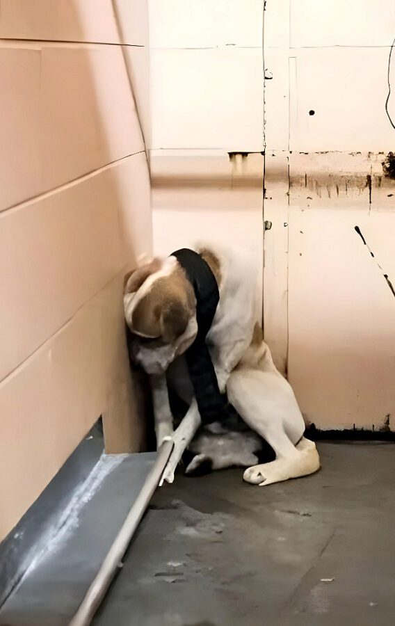 The dog was later named Stephen, a gentle name chosen to remind everyone involved that he was more than what had been done to him. At first glance, it was clear he had been without proper care for a long time. His ribs showed, his coat lacked shine, and his eyes carried a distant, guarded look. Nothing about him suggested comfort or safety. Those who found him understood immediately that whatever his past held, it had not been kind.