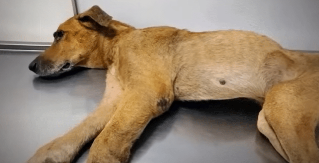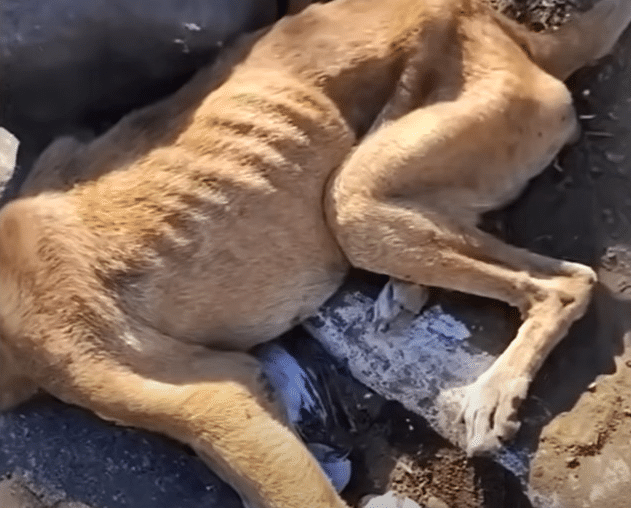 His body was painfully thin, with his ribs clearly visible beneath his dull, tangled coat. Dehydration had drained his energy, and exhaustion weighed heavily on him. Yet what struck the rescuers most wasn’t just his physical condition—it was his expression. His eyes didn’t show anger or panic. Instead, they reflected a quiet emptiness, as though he had already accepted that help wasn’t coming.
