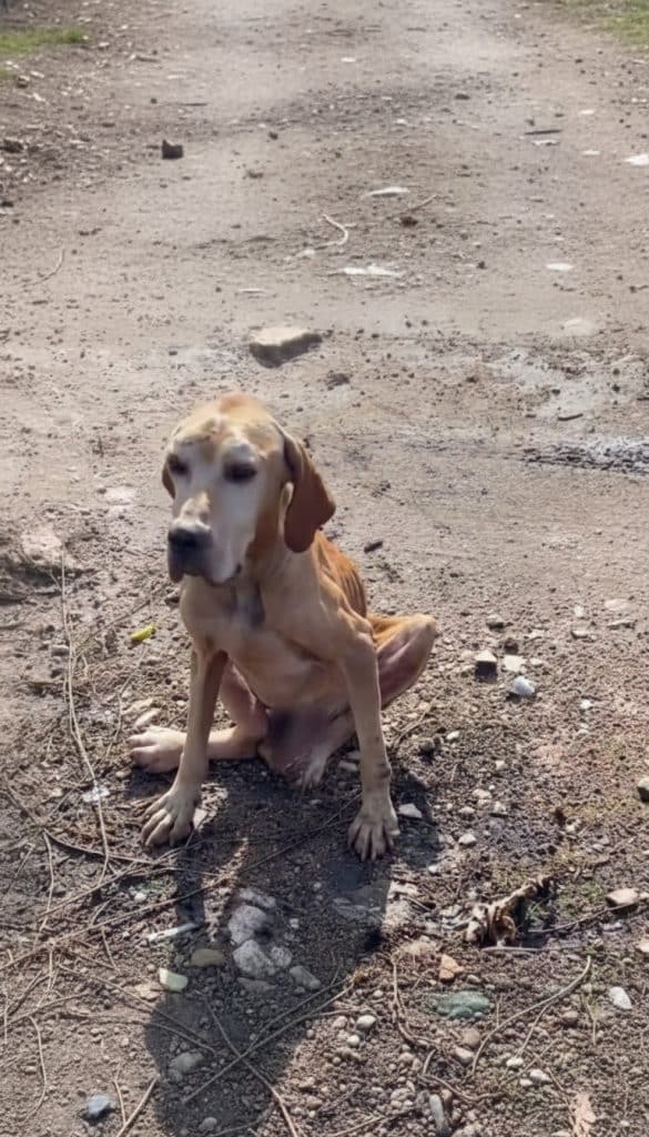 On what seemed like an ordinary workday, a man earning his living near a garbage dump noticed something that made him stop mid-step. Among piles of discarded objects and broken remnants of daily life sat a dog whose presence felt out of place, yet impossible to ignore. He was painfully thin, his frame showing the toll of time and neglect, but it was his eyes that told the real story. They held no anger, no aggression—only a calm, almost silent question, as if he were asking whether anyone would finally see him.
