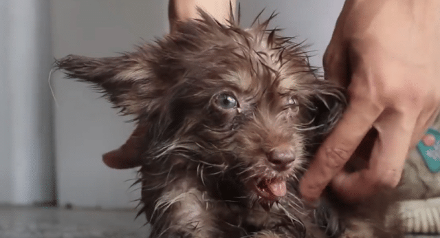 From the moment this story began, it carried a weight that was impossible to ignore. It started quietly, without witnesses or headlines, beside an ordinary trash bin where a tiny puppy sat alone. Small, frail, and visibly exhausted, the puppy looked completely out of place in a world that seemed far too large and indifferent. Its fur was matted and dull, tangled from days of neglect, telling a silent story of hardship long before anyone stopped to listen.