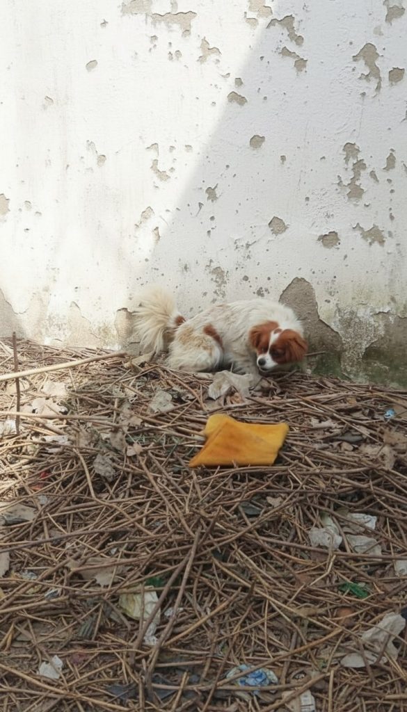 We first noticed her on a quiet street, tucked into a small corner as if trying to disappear. Her body was thin, her movements hesitant, and she trembled whenever someone passed by. One of her legs was clearly injured, and she struggled to stand without discomfort. Dirt clung to her fur, and her eyes—once likely full of life—were clouded with fear and exhaustion. She had the look of an animal that had learned the hard way to expect very little from the world.