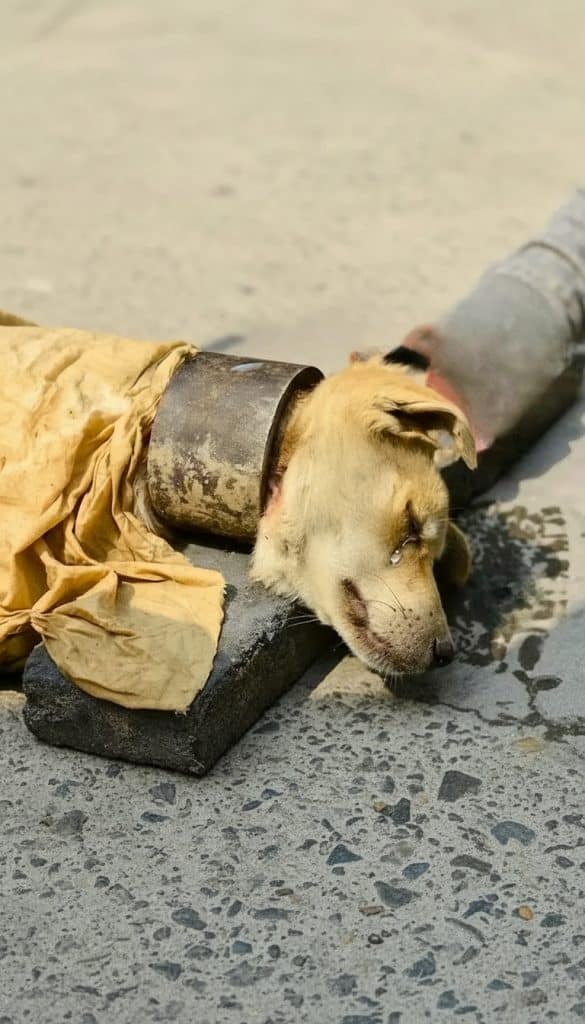 Once the collar was removed, the dog was rushed to a veterinary clinic for immediate care. Medical professionals carefully cleaned the affected area, treated the wounds, and monitored the animal’s condition to ensure there were no lasting complications. Thanks to prompt intervention, the dog began to show signs of relief and recovery. At the same time, authorities launched an investigation to determine how the situation occurred and who may be responsible, signaling growing attention to cases involving animal harm.