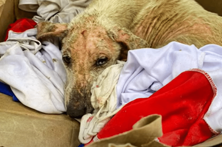 At first, my mind struggled to understand what I was seeing. Then it became clear. Curled up among discarded bags and debris was a dog—silent, motionless, and painfully still. He didn’t bark. He didn’t try to escape. He simply looked up, his eyes following every movement, as if he had already used all the strength he had left. Someone had thrown him away like trash.