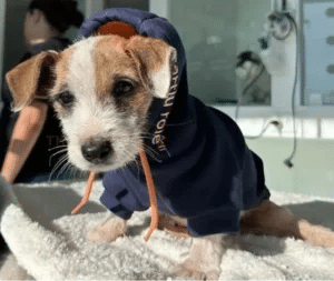 When a caregiver knelt beside him for the first time, Clark responded with a faint wag of his tail. It wasn’t strong or energetic, but it was intentional. That simple motion carried a powerful message: he was still here, still aware, and still reaching out.