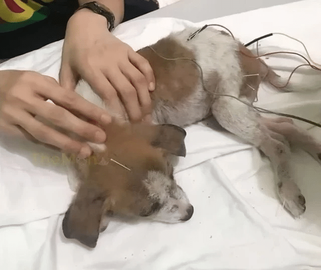 His caregivers refused to let his story end in sadness. They committed themselves fully to his recovery, understanding that healing would take time, patience, and consistency. The first steps in his rehabilitation were careful and deliberate. Acupuncture was introduced as a way to stimulate his nervous system and encourage movement. To the surprise of many, Toby accepted these sessions calmly. He lay still, breathing softly, as if he somehow understood that these moments were meant to help him.