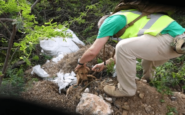 On that day, fate intervened in an unexpected way. A man who happened to share the same name—Alex—was cleaning the area nearby when something caught his attention. At first glance, the dog looked like part of the landscape, but a closer look revealed a living being in need. Shocked by what he saw, the man knew he couldn’t walk away. Without hesitation, he began making calls to find help.