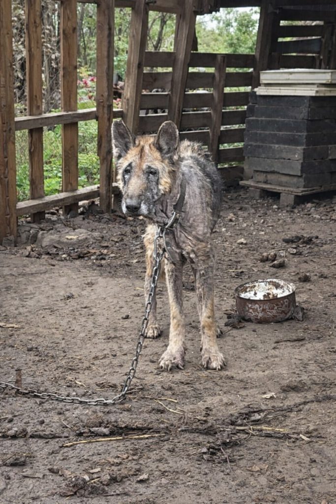 Her living conditions took a toll on her health. Without proper food or fresh water, Kira became severely undernourished and dehydrated. Her coat, once full and soft, thinned and irritated her skin. A painful skin condition developed, making rest difficult and movement uncomfortable. Still, she remained calm and affectionate, as if she understood that kindness had not completely disappeared from the world.