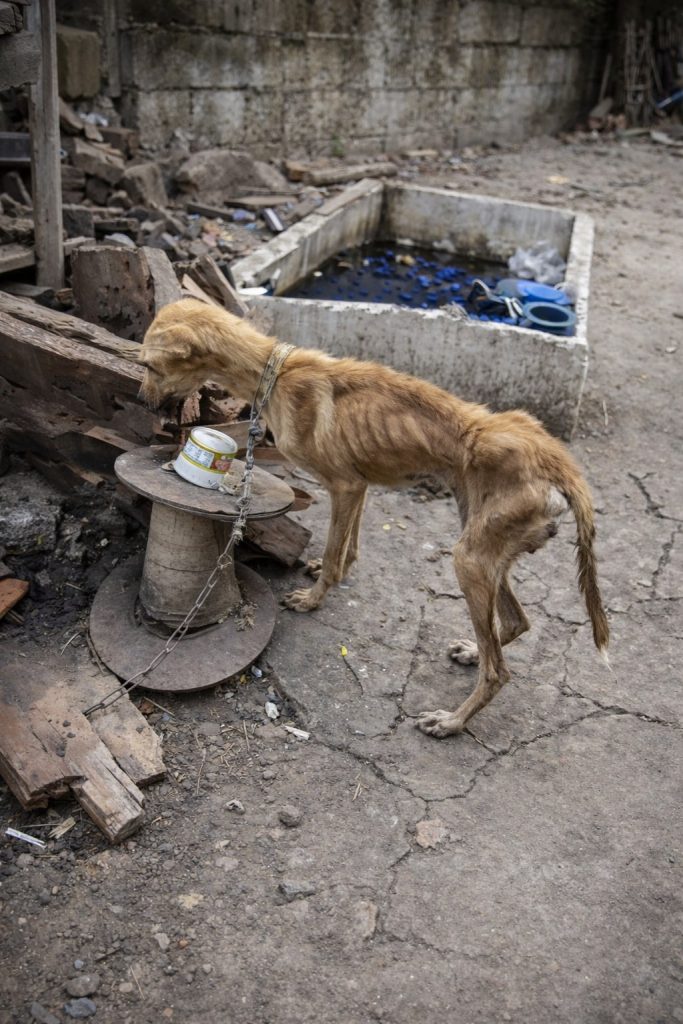 When Olive was finally safe, the extent of her condition became clear. She was painfully thin, her ribs clearly visible beneath her skin. Signs of many pregnancies had taken a toll on her body, leaving her weak and exhausted. Parasites covered her coat, and fear shaped every movement she made. She avoided eye contact, shrinking away from human touch as if expecting it to bring harm.