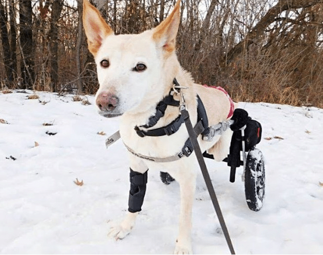 Her days became filled with joy and adventure. She shared her home with a canine sister who treated her like an equal, not a burden. Together, they explored parks, rolled across grassy fields, and soaked in the simple pleasure of being outside. Lunetta experienced snow for the first time, her eyes lighting up as she glided across the white ground, completely unbothered by what she couldn’t do.