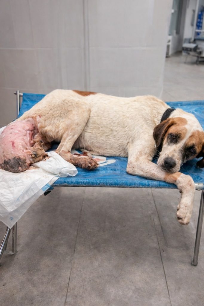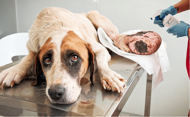 Alma was a small dog whose life had become a daily struggle with pain. For months, possibly longer, she had carried a massive growth on her leg that made walking difficult and resting uncomfortable. Each movement took effort. Each step seemed to remind her that her body was failing her. Yet she survived quietly, without knowing that relief was even possible.