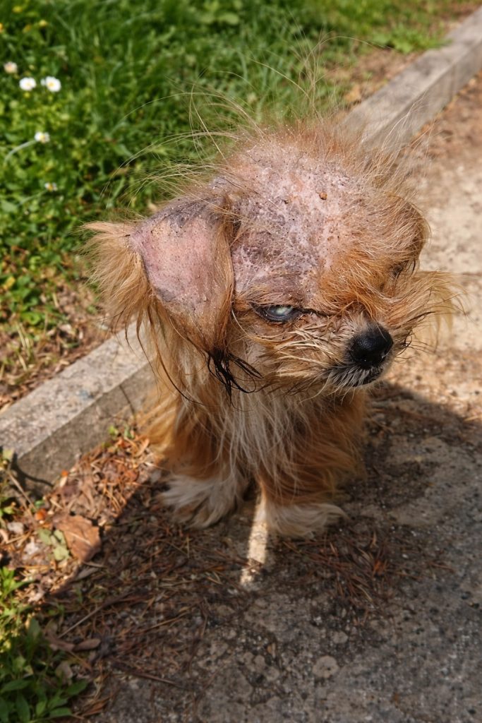 Before anyone knew his name, Frodo was simply another stray navigating harsh conditions on his own. He roamed the streets thin and exhausted, his body clearly struggling to keep up. His skin was inflamed and irritated, his fur patchy and brittle, and his eyes showed signs of long-neglected infection. Each step he took was a sign of endurance, even when the odds were stacked against him.