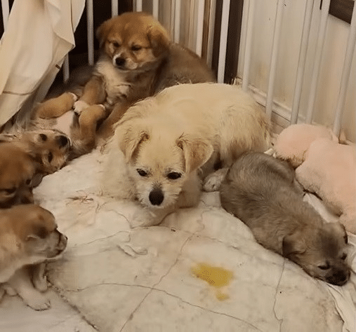 As the hours passed, the puppies slowly began to emerge. One by one, tiny noses sniffed the air, and cautious paws stepped toward the unfamiliar humans. Gentle voices and slow movements helped ease their fears. By the end of the day, all seven puppies were eating and resting comfortably.