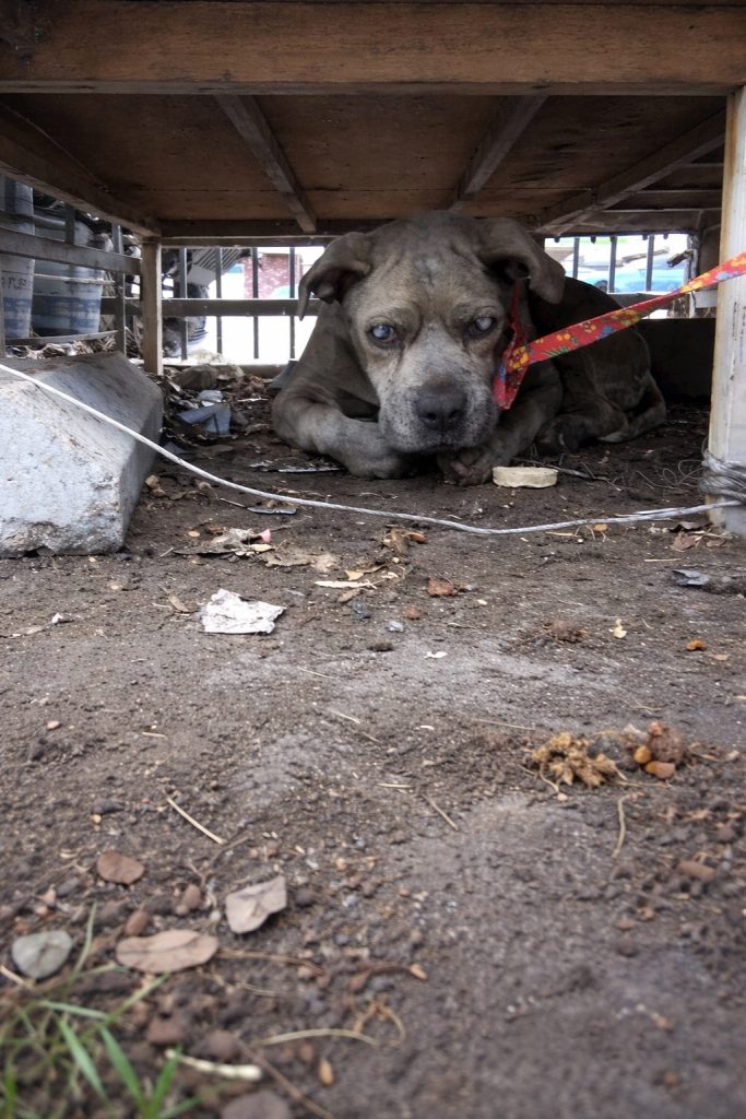 At around twelve years old, the senior pit bull mix was exhausted beyond words. Blind, frail, and weathered by years of hardship, Duncan collapsed onto the cold ground as if he had quietly accepted that this was where his journey would end. The world around him had faded into shadows long ago, and with it, any sense of safety or belonging.